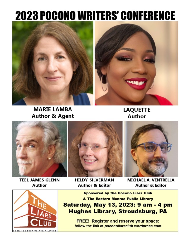 We had a great time at the Liars Club annual workshop, back after a few years gone (due to COVID). Special thanks goes to all the presenters: Sahar Abdulaziz, Kelly Jensen, Victoria Marie Lees, Susan Moore Jordan, Mary Ann Moore, and Michael A. Ventrella. It was well attended and we’ve received nice compliments and reviews.